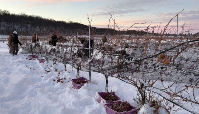 Students brave the cold for ice wine harvest at Niagara College