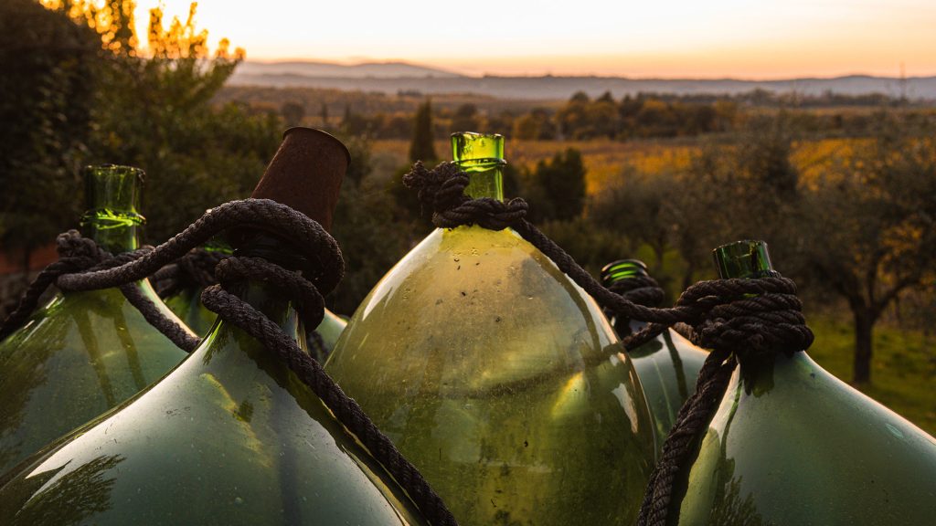 But even as commercial producers started using corks in the 17th century, Woltz says rural families kept using olive oil to cover their wine. “Even into the 1900s, people would make wine at home and keep it in demijohns,” Woltz says. “They didn’t have a cork or another stopper, so they would just put olive oil above it, and that would create the barrier to stop oxidization.”